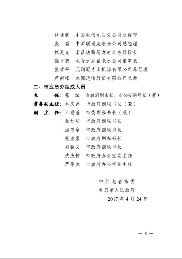 市委關(guān)于調(diào)整龍巖市突發(fā)事件應(yīng)急委員會(huì)及龍巖市突發(fā)事件應(yīng)急委員會(huì)辦公室成員的通知(巖委【2017】40號(hào))