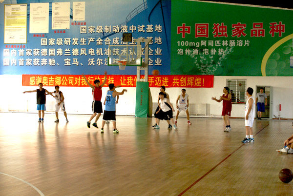 7月14日下午,奧吉娜與北車集團沈陽機車車輛有限責任公司舉行了籃球友誼賽。14:00,隨著裁判一聲哨響比賽正式開始,比賽中雙方隊員,奮力廝殺,激情對決。
