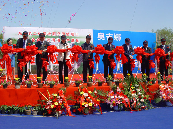 2006年 5 月 11 日上午9:59分,由沈陽奧吉娜化工有限公司承建的我國第一個 PAO 全合成潤滑油生產基地奠基儀式正式開始,國家發改委有關項目負責人,遼寧省政協,科協、沈陽市政府有關領導、金杯汽車股份公司、沈陽航天三菱發動機有限公司,航天新光發動機有限公司代表、曾與奧吉娜公司建立 “校企科研合作平臺”的大連理工大學代表及軍方代表、業界人士共同到場出席剪彩儀式。